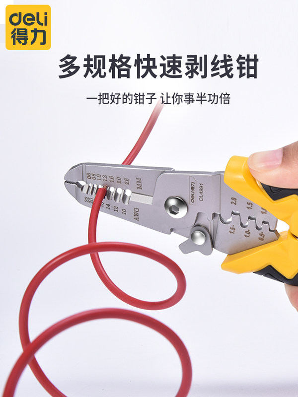 得力(deli) 高碳钢带刃口7档多功能轻便电工剥线钳电子电工手动工具0.6-2.6mm DL260