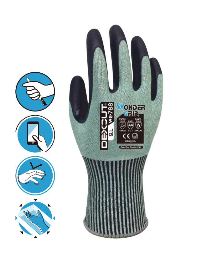 多给力 WG-788 DEXCUT 虎口加强型触屏防切割作业手套 8/M 9/L 10/XL 绿白 12双/袋