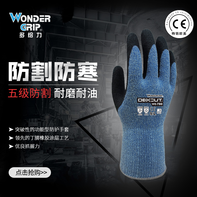 多给力 WG-780 Cut Thermo 防寒防切割作业手套 8/M 9/L 10/XL 蓝 12双/袋
