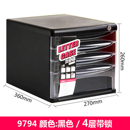 四层带锁文件柜 得力9794黑色/灰白色 270mm*360mm*260mm 1个/箱