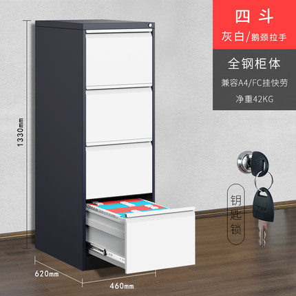 档案柜 4斗卡箱 规格:460*620*1330mm 材料厚度:0.7mm 表面浅灰色