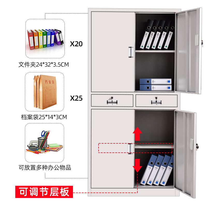档案柜 2斗卡箱 规格: 460*620*730mm 材料厚度:0.7mm 表面浅灰色