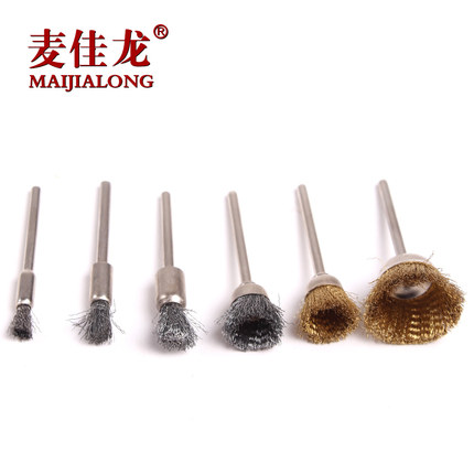 抛光用铜丝刷,麦佳龙6*3 笔形Φ6mm,打磨头杆Φ3mm 10个/包