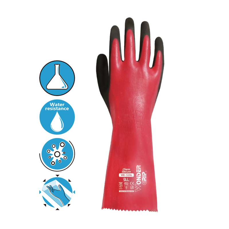 多给力 WG-328L Chem&Secure加长型防水防化作业手套 7/S 8/M 9/L 10/XL 红 12双/袋