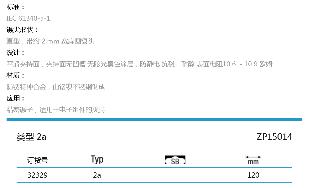 规格型号:ZP 15 0 14 120 mm Professional ESD