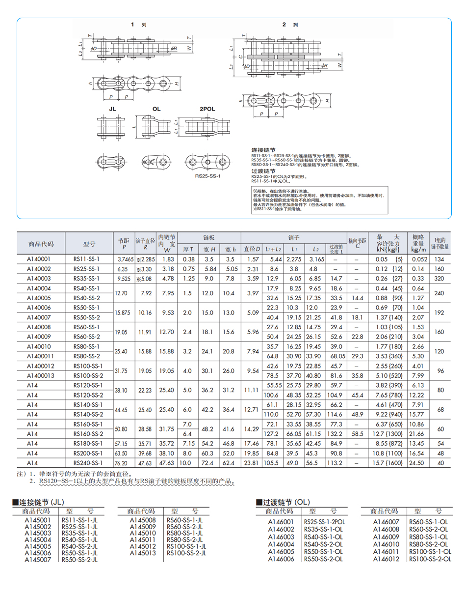 椿本椿本 不锈钢传动链SS规格