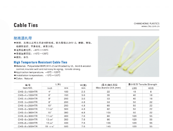 长虹塑料耐高温扎带 CHS-3×100HTR