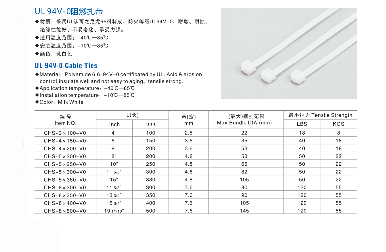 - 商品名称:UL 94V-0阻燃扎带