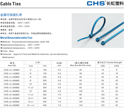 长虹塑料金属可探测扎带 CHS-3×100MD