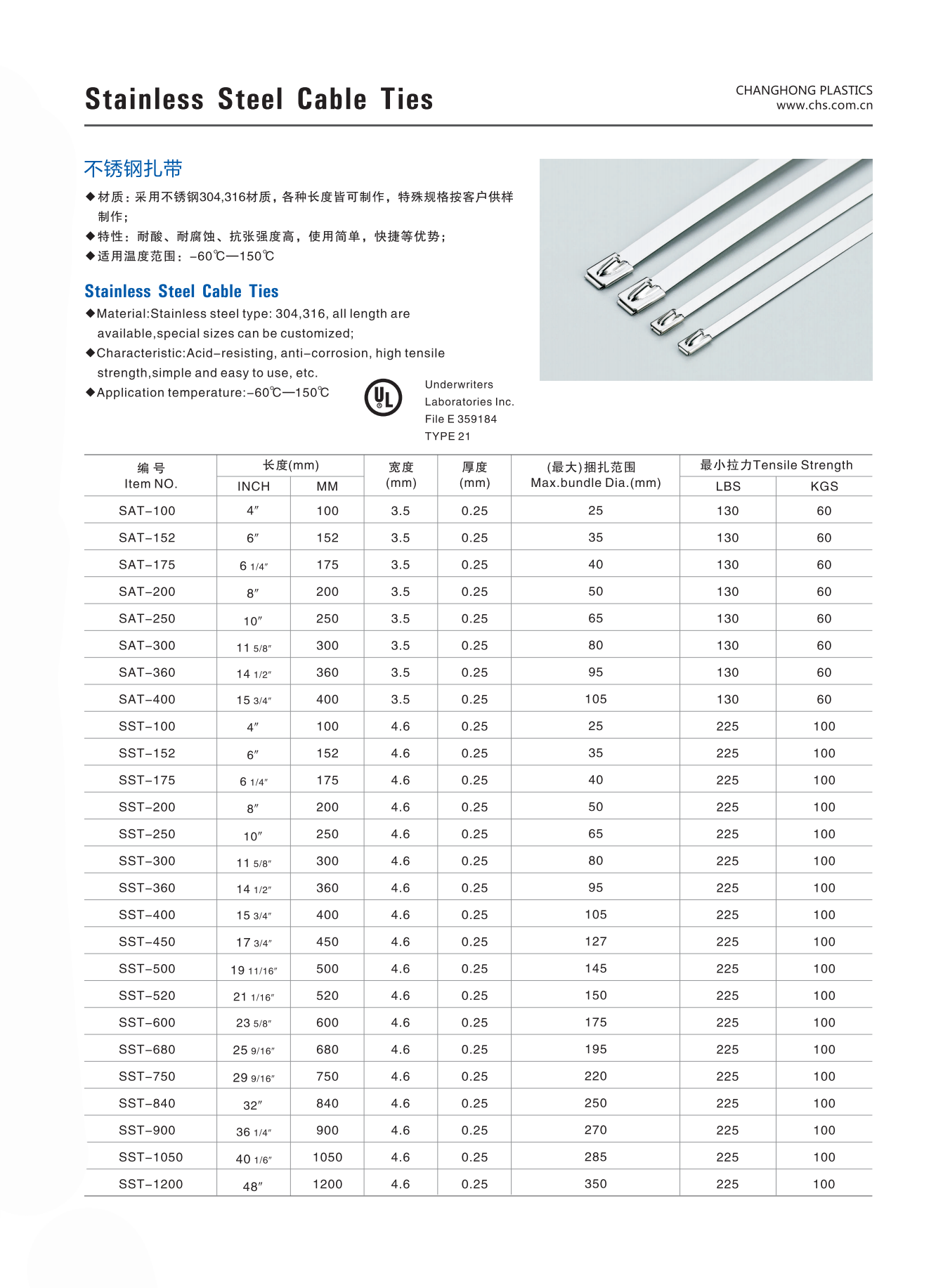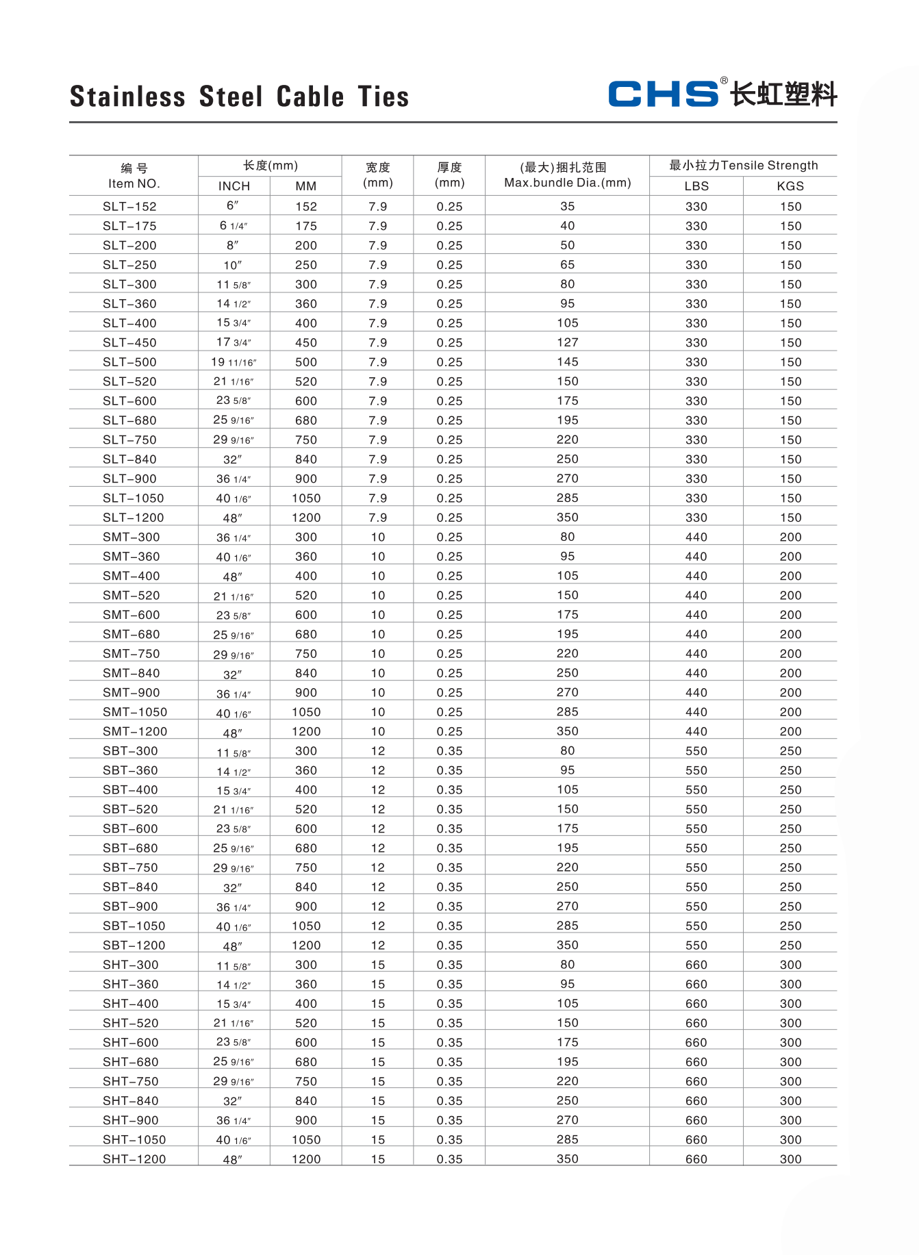 长虹不锈钢扎带 SAT-100~SHT-1200