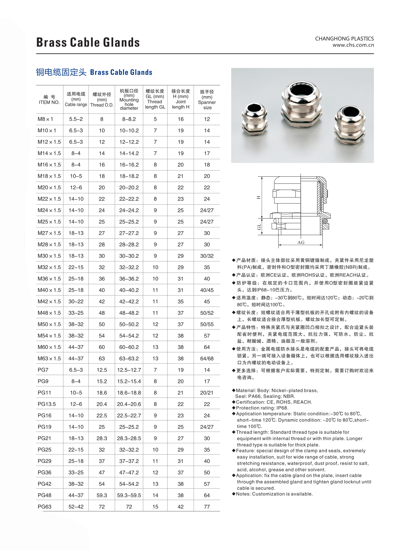 规格型号:M8×1~PG63