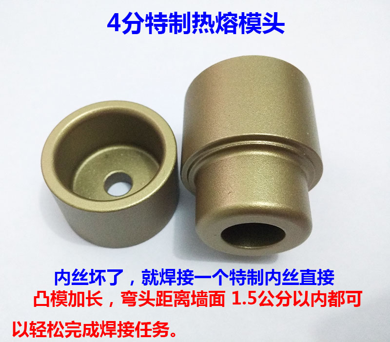 特别提示:本加长加厚模头是凹模底部加长,凹模加长后的总高度是7CM ,焊接水管的热熔水管部分的尺寸加厚但长度不变。简单地说就是常用的加厚模头加高了,目的是为了伸进墙里焊接水管。 有不懂的及时咨询我们