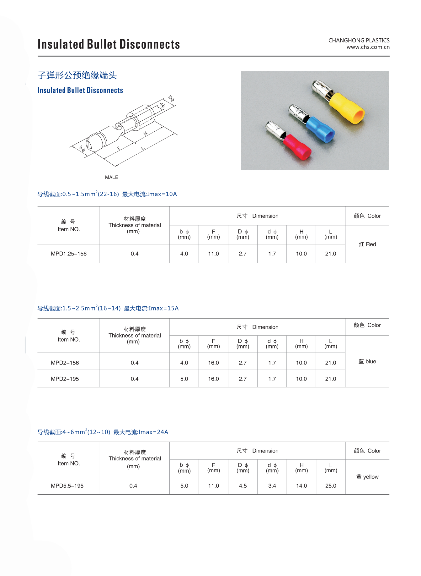 长虹子弹形公预绝缘端头 MPD1.25-156