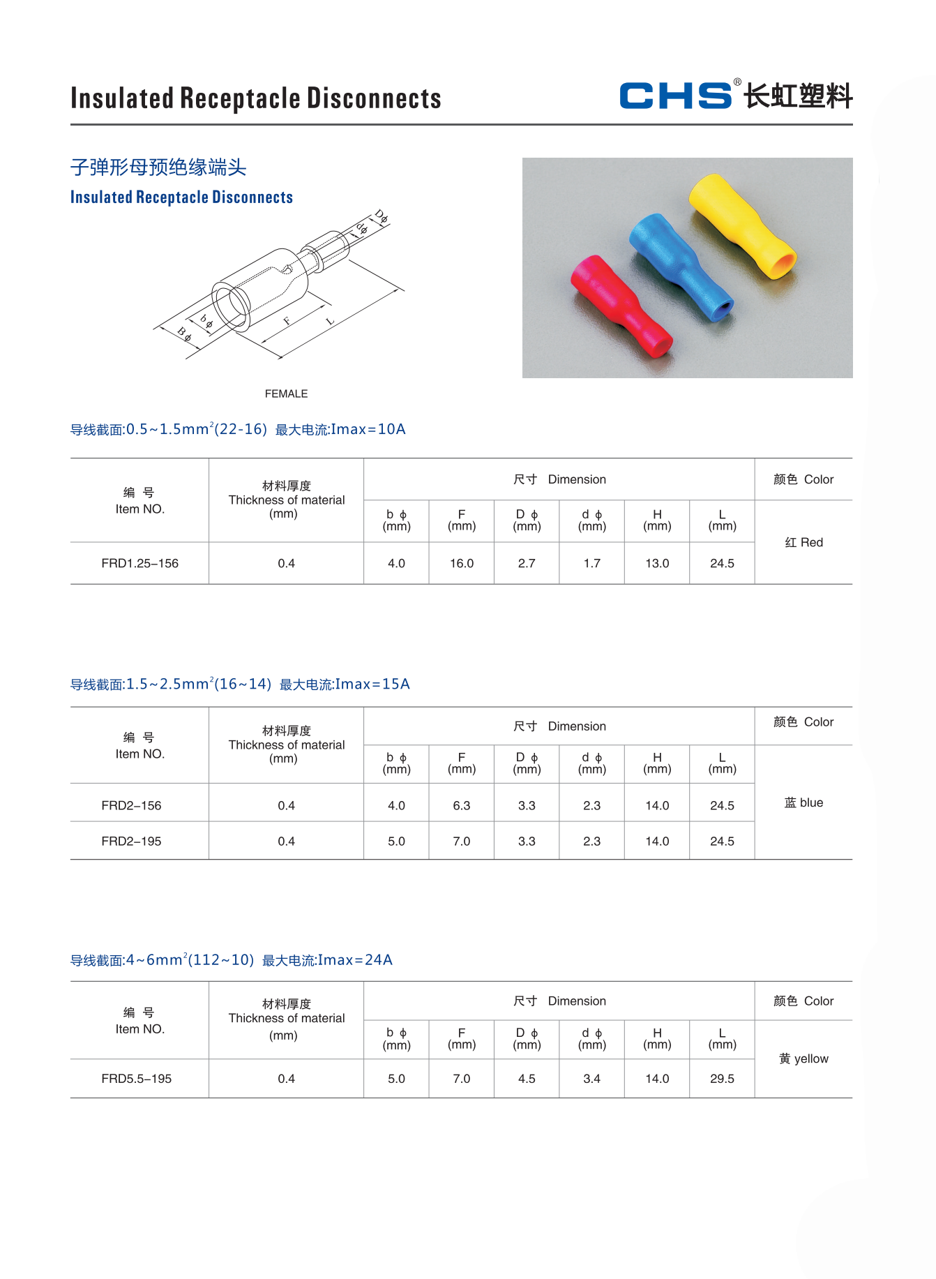 长虹子弹形母预绝缘端头 FRD1.25-156