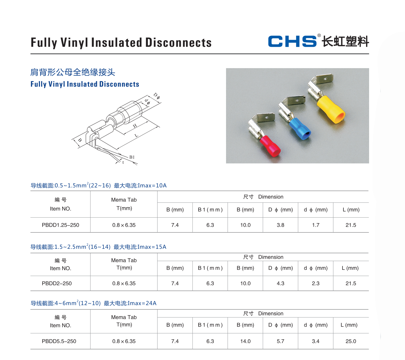 长虹肩背形公母全绝缘接头 PBDD1.25-250