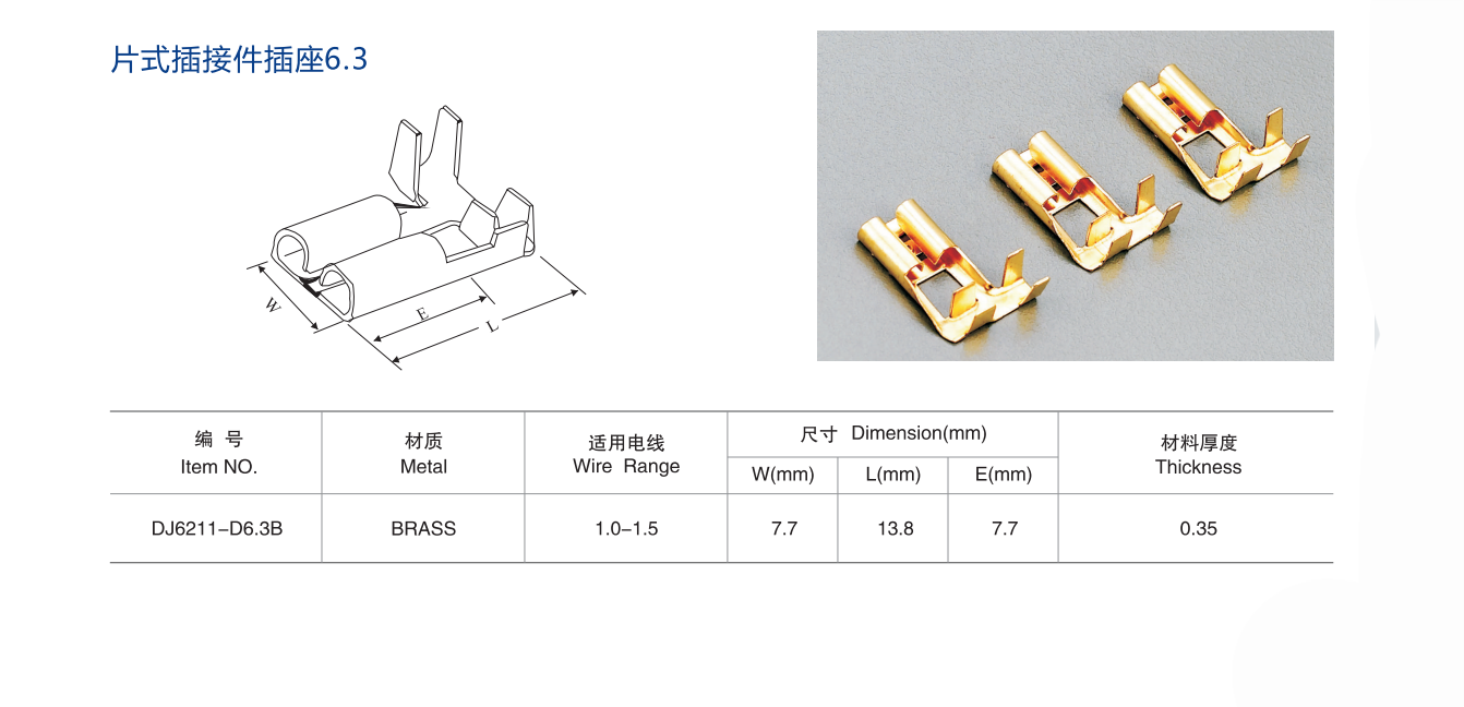长虹片式插接件插座6.3 DJ6211-D6.3B