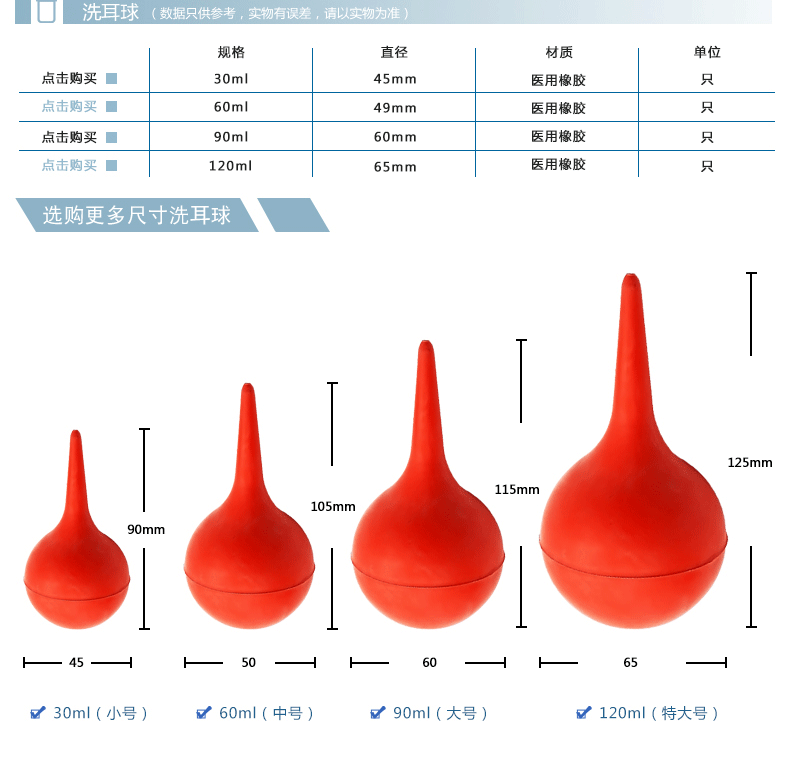 90ml 洗耳球 吹尘球皮老虎吸耳球电脑除尘气吹吸 医用橡胶 60mm 红色 1/个 一周内发货 ¥6.59