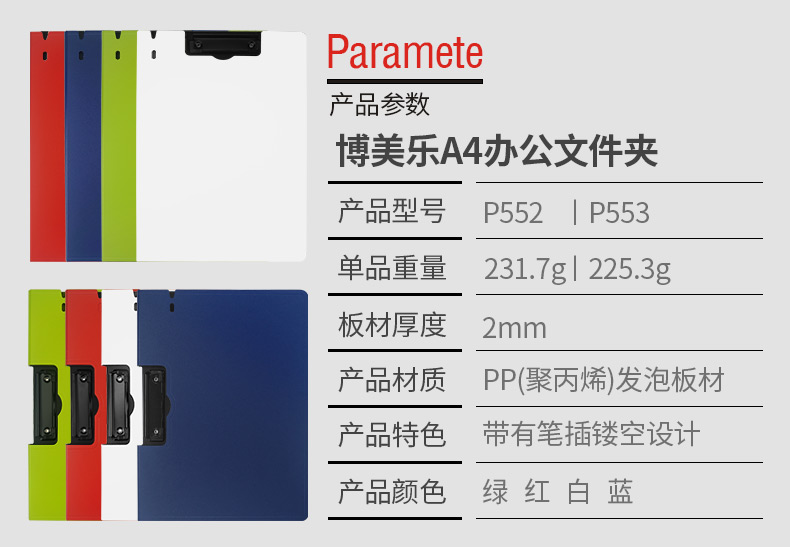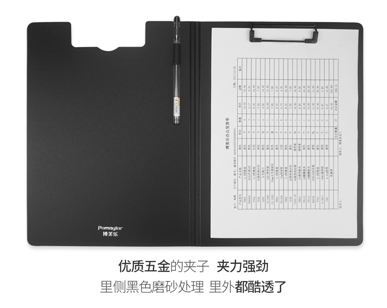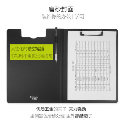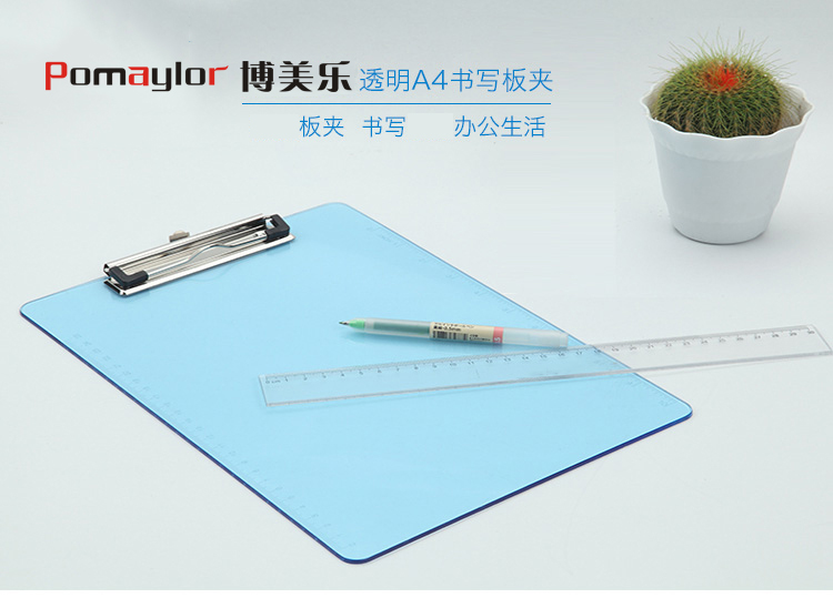 pomaylor/博美乐单板夹A4文件夹办公用品夹板文具书写透明 塑料