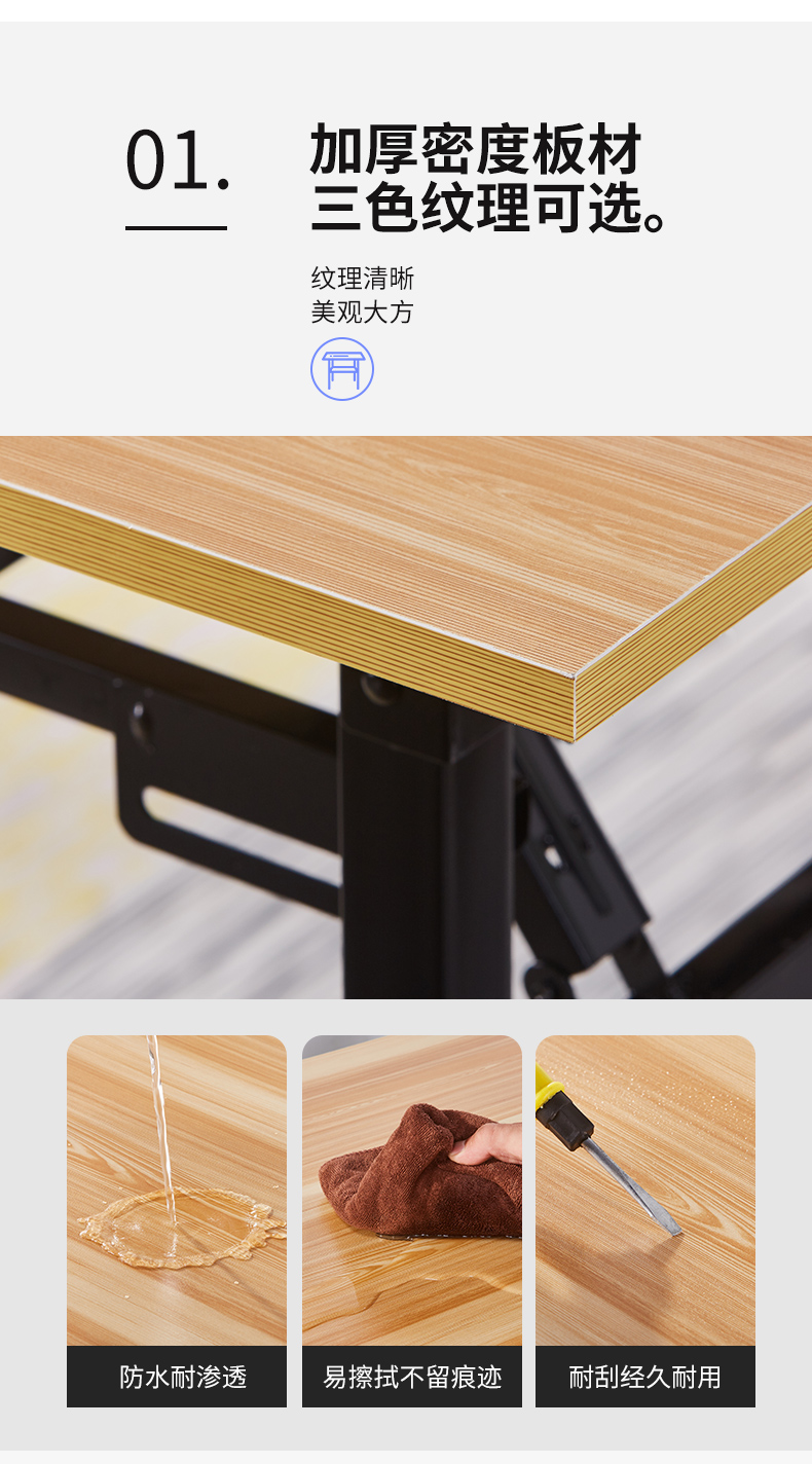 材质:三氢板,厚度2.5厘米厚,铁架,脚可以折叠。