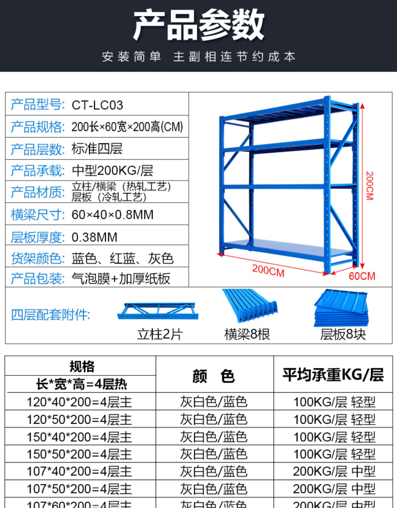 - 重型加厚200*60*200主架4层50
