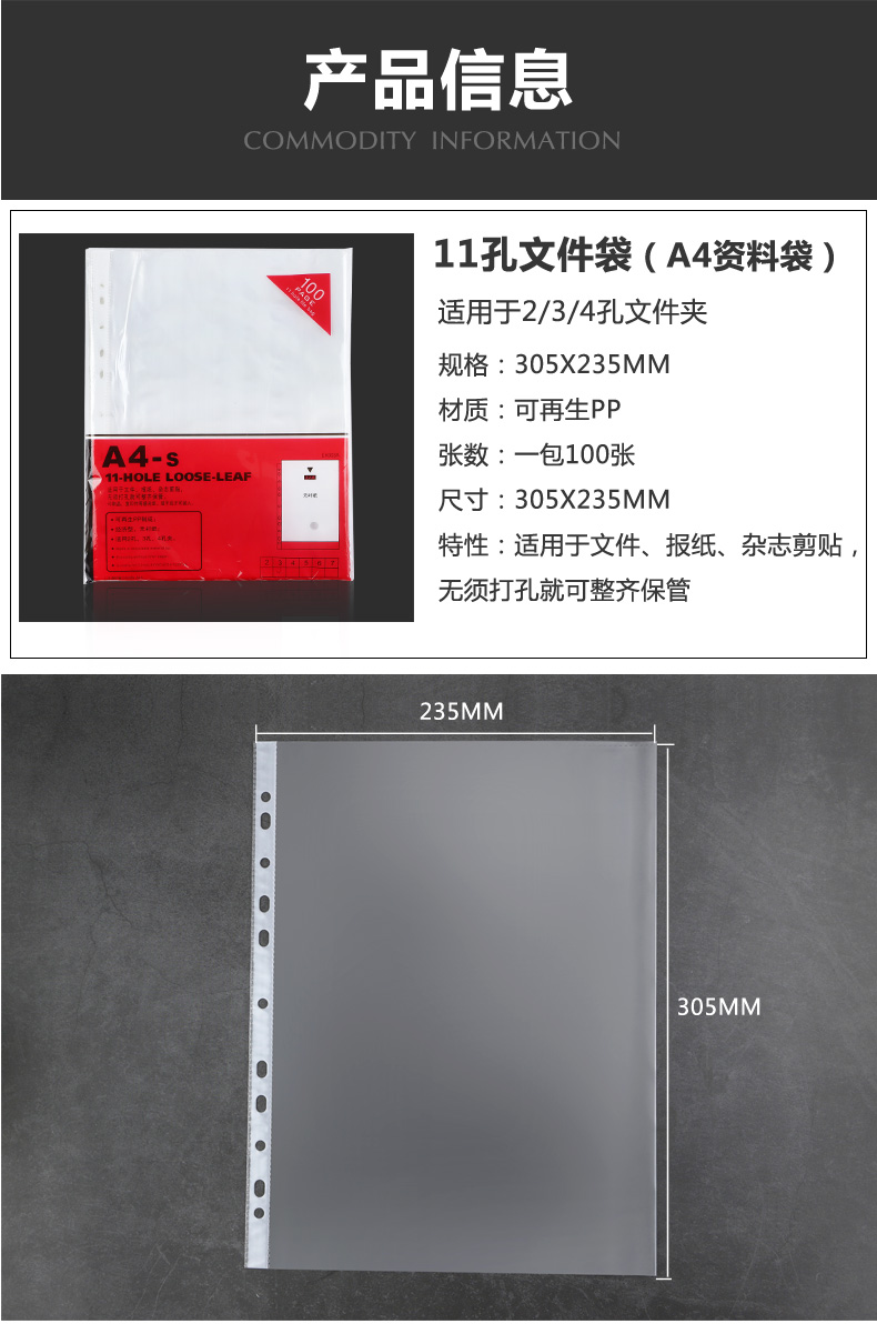 - 商品名称:11孔文件袋a4保护膜透明保护袋套