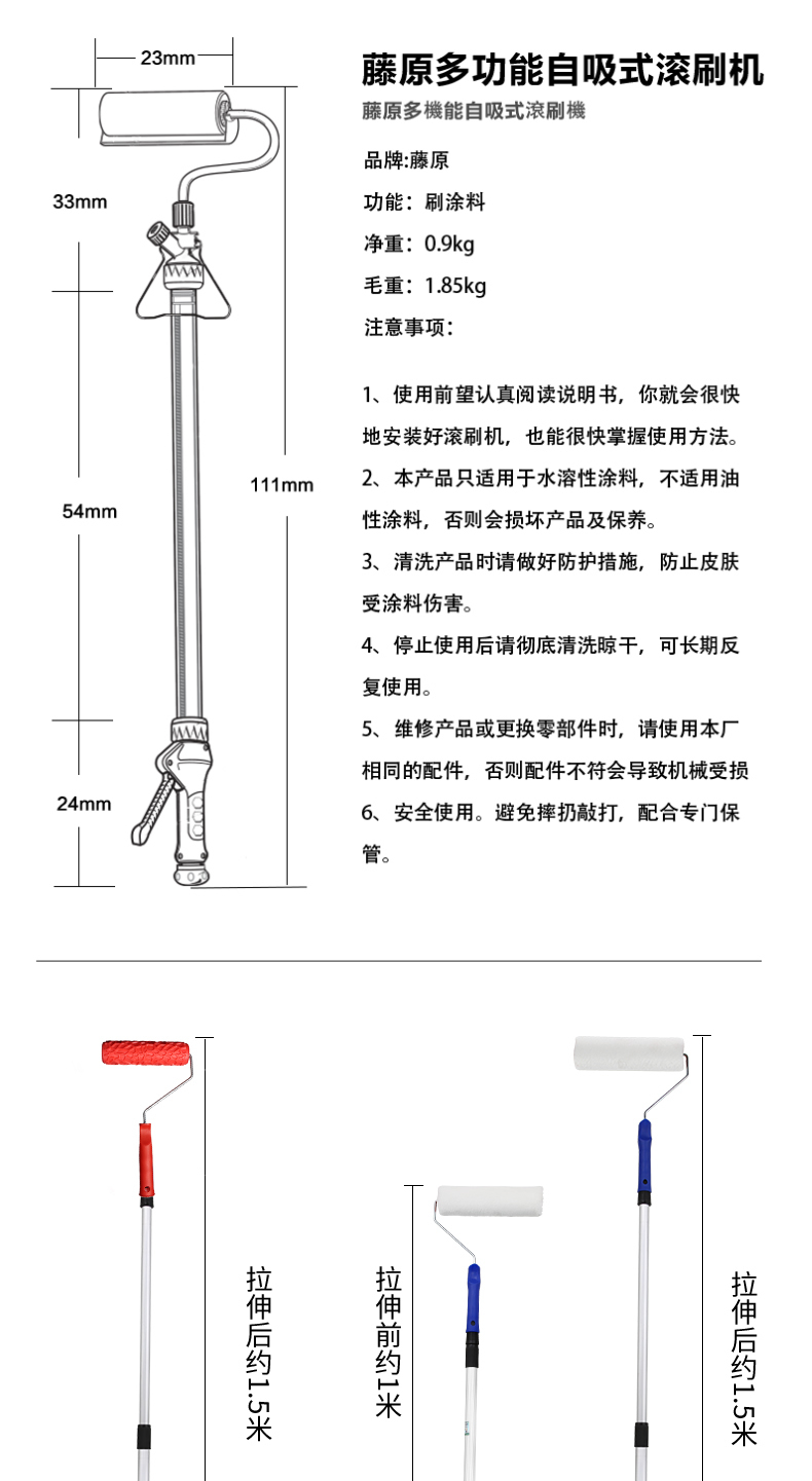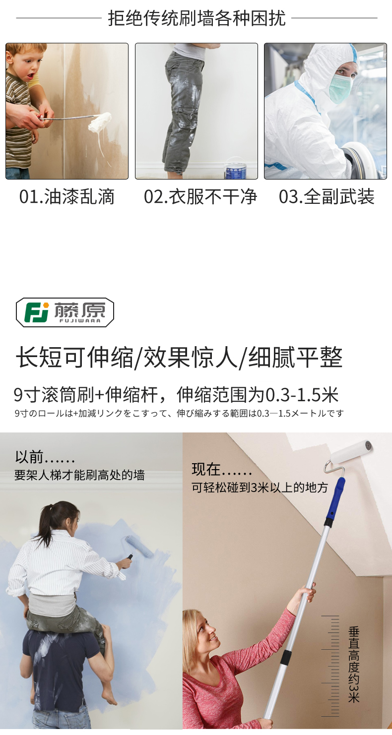 - 伸缩杆+9寸无死角滚筒刷