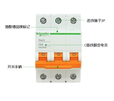 EA9 3P C 三相小型空气开关断路器 63A 1/个 一周内发货 ¥151.00