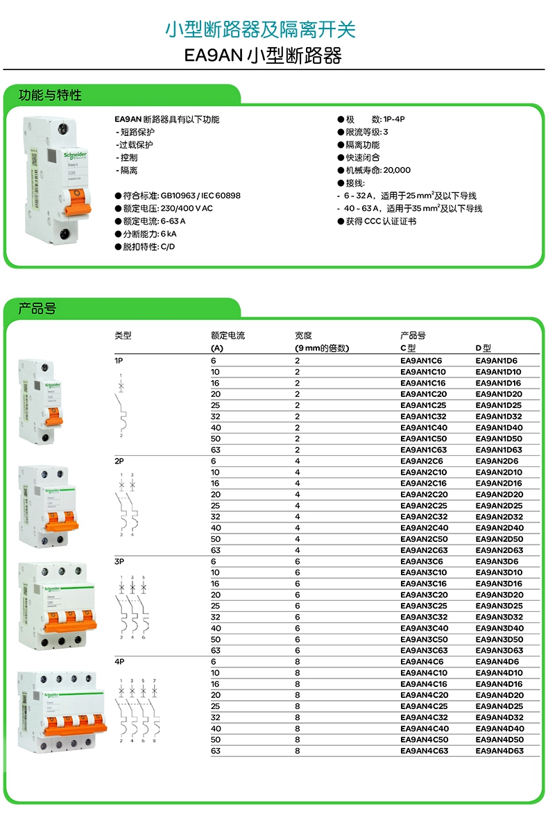 • 额定电流: 6A 10A 16A 20A 25A 32A 40A 50A 63A