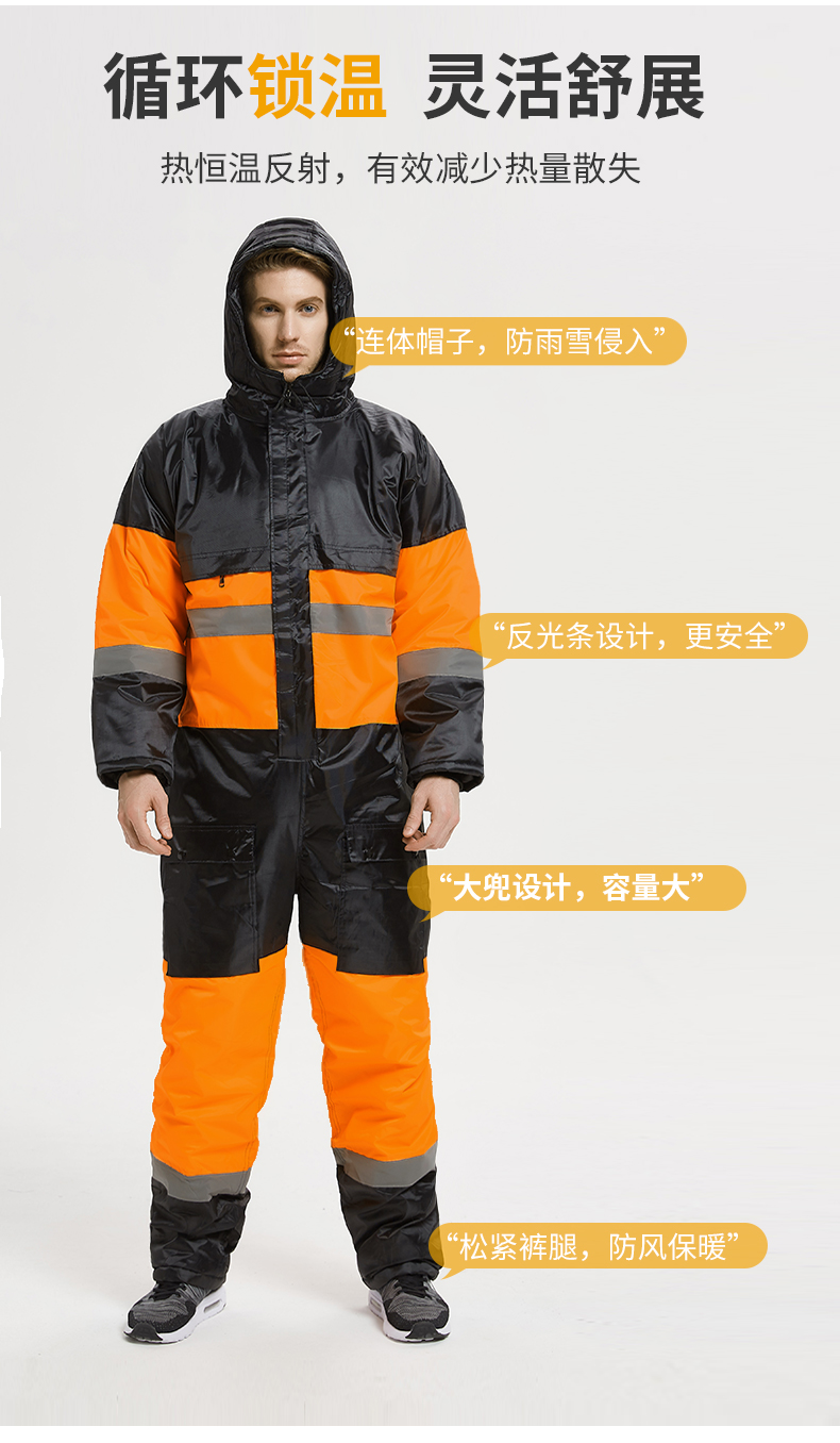 - 商品型号:防水防寒加厚保暖(黑橘连体)-M