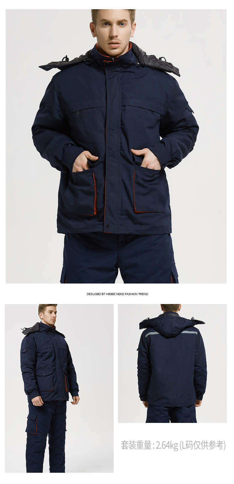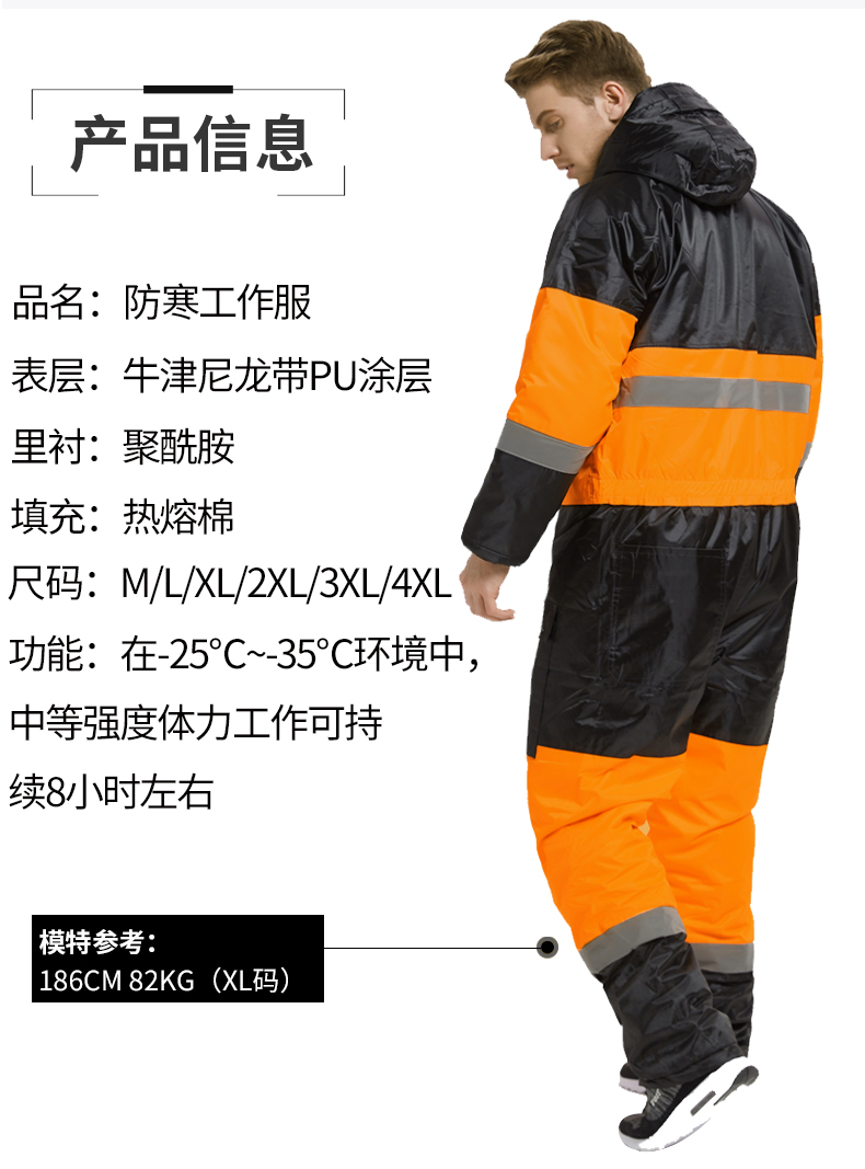 - 商品名称:连体防寒冷库防护工作服带帽