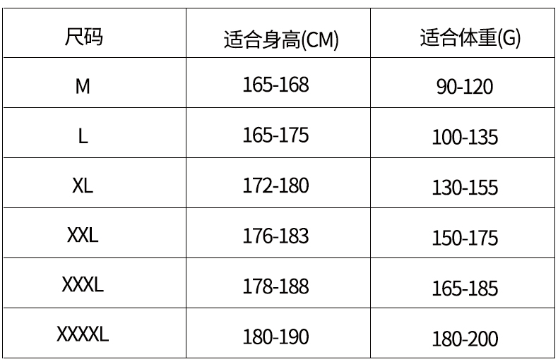 尺码: M L XL XXL