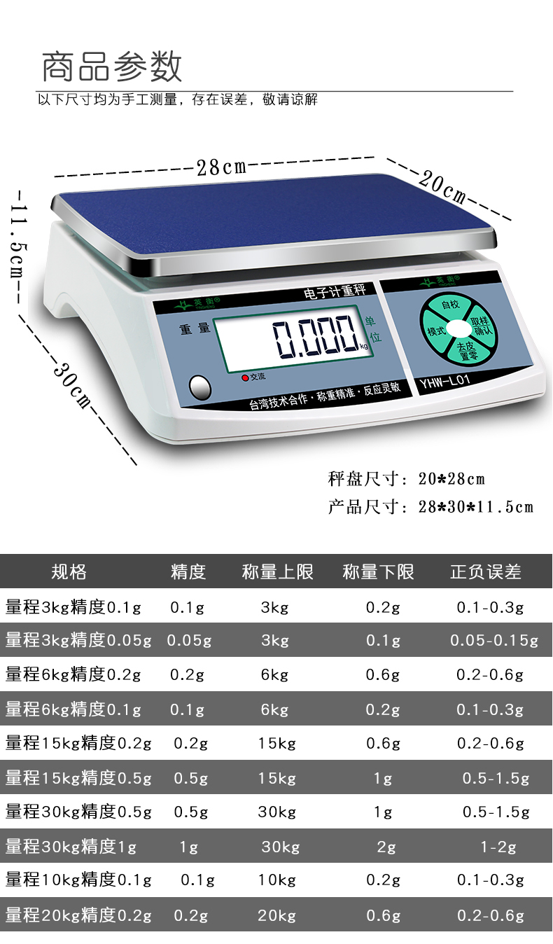 规格型号:YHC-L01计数电子桌秤