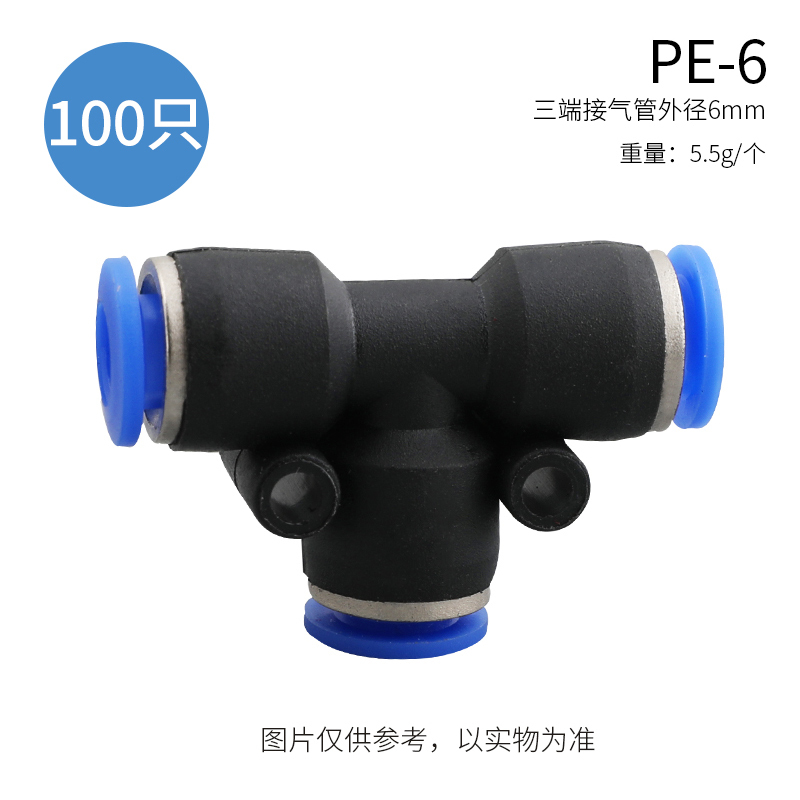 三通气接头φ6 目赖 快插T型三通PE-6 外径6mm 内径4mm |