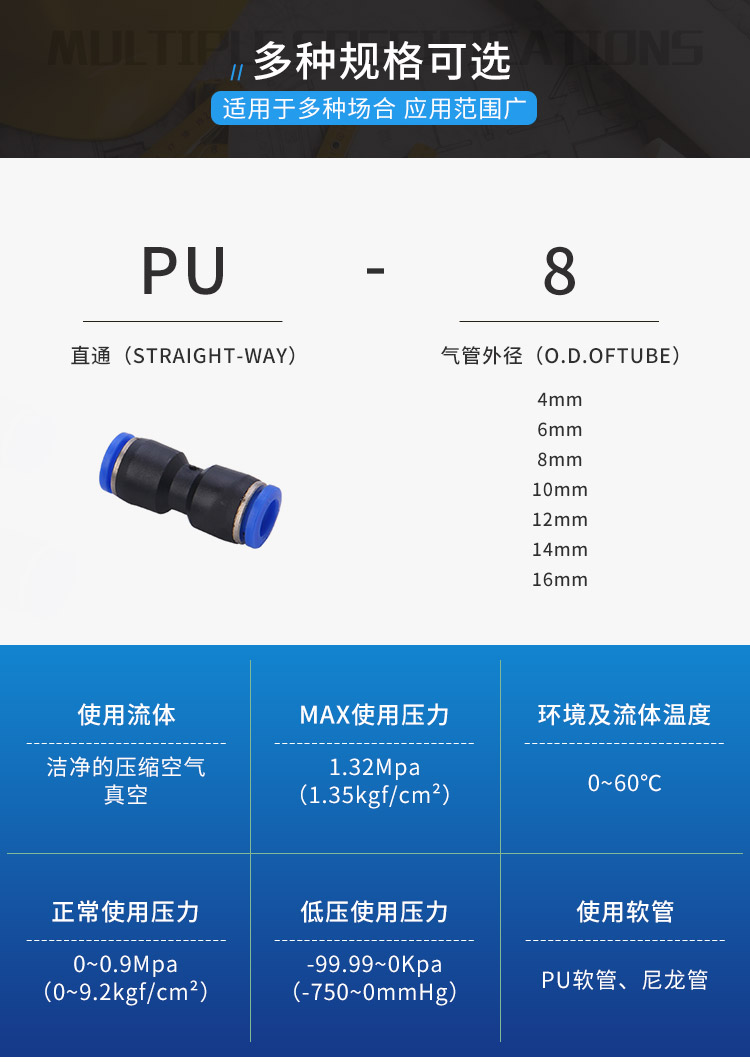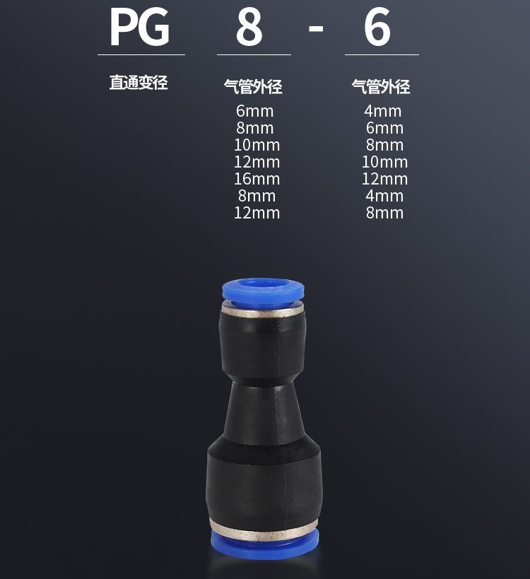 气接头直通φ8 目赖 快插PU-8 外径8mm 内径5mm |