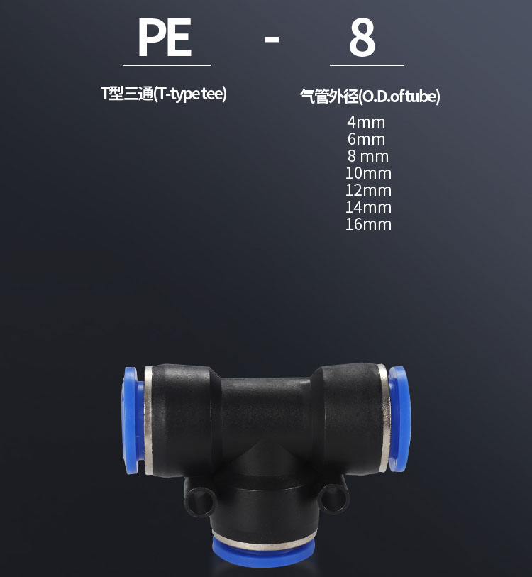 气接头三通φ8 目赖 快插T型三通PE-8 外径8mm 内径5mm |