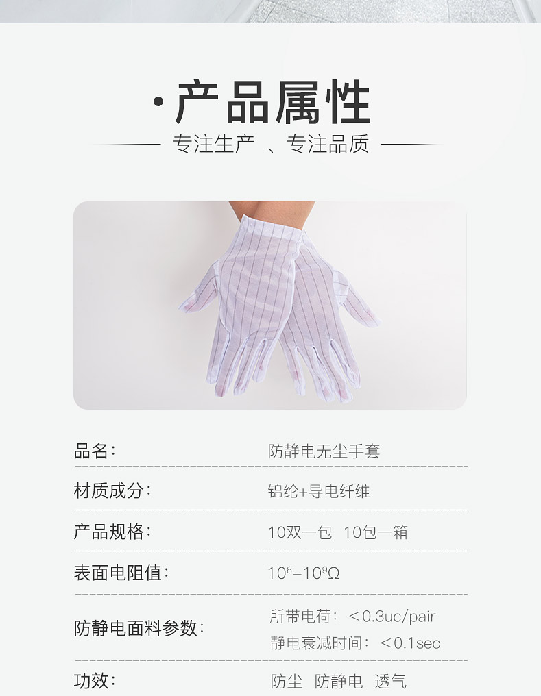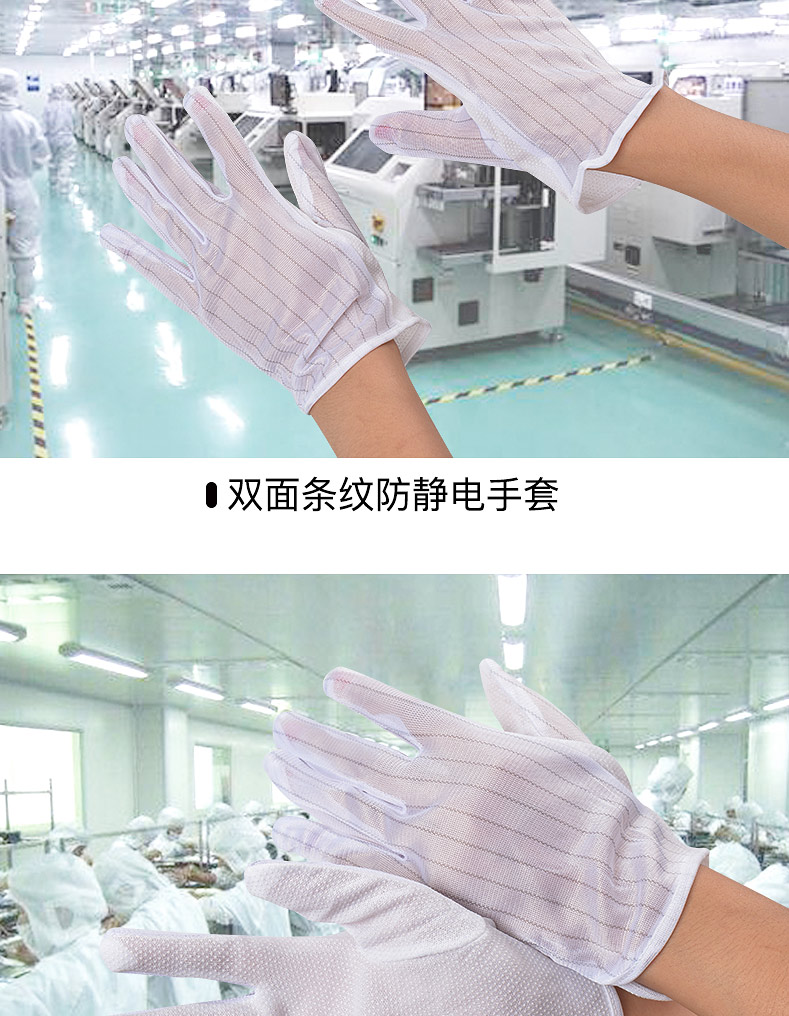规格型号:涤纶+导电纤维 90g/包 白色条纹 10副/包