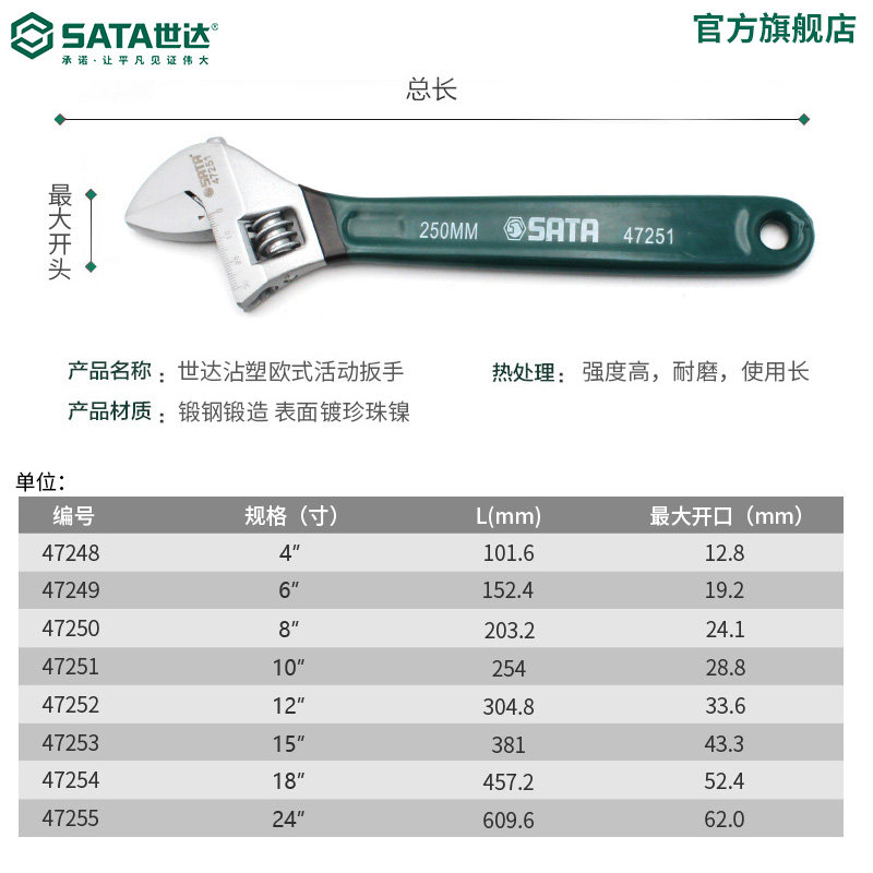 世达活动扳手 规格:4"长度:100mm