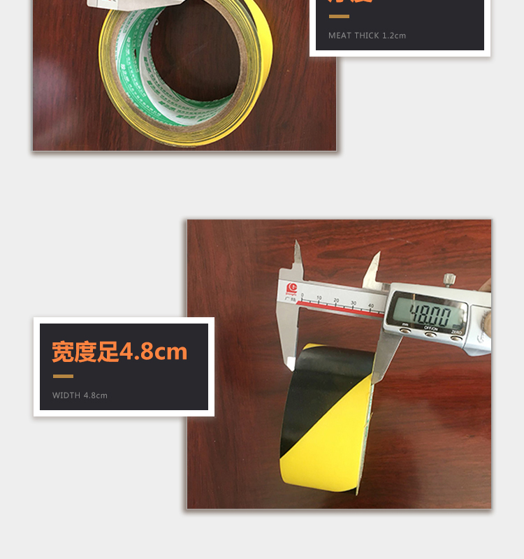 规格型号: 黄/黑 48mm*20m PP10 PET材质 剥离力5N/25mm 初粘力#>14