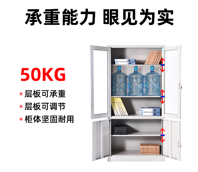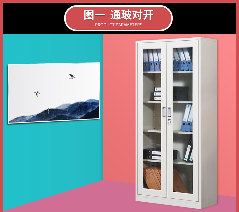 规格型号:五层文件柜 灰色 高185cmX宽85cmX厚40cm 两开门 中间上下透明玻璃
