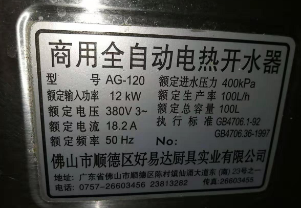规格型号:商用全自动电热开水器,AG-120,12KW,100L/H,好易达