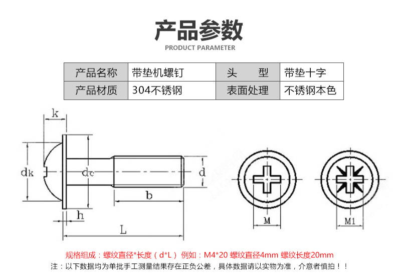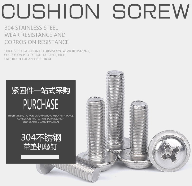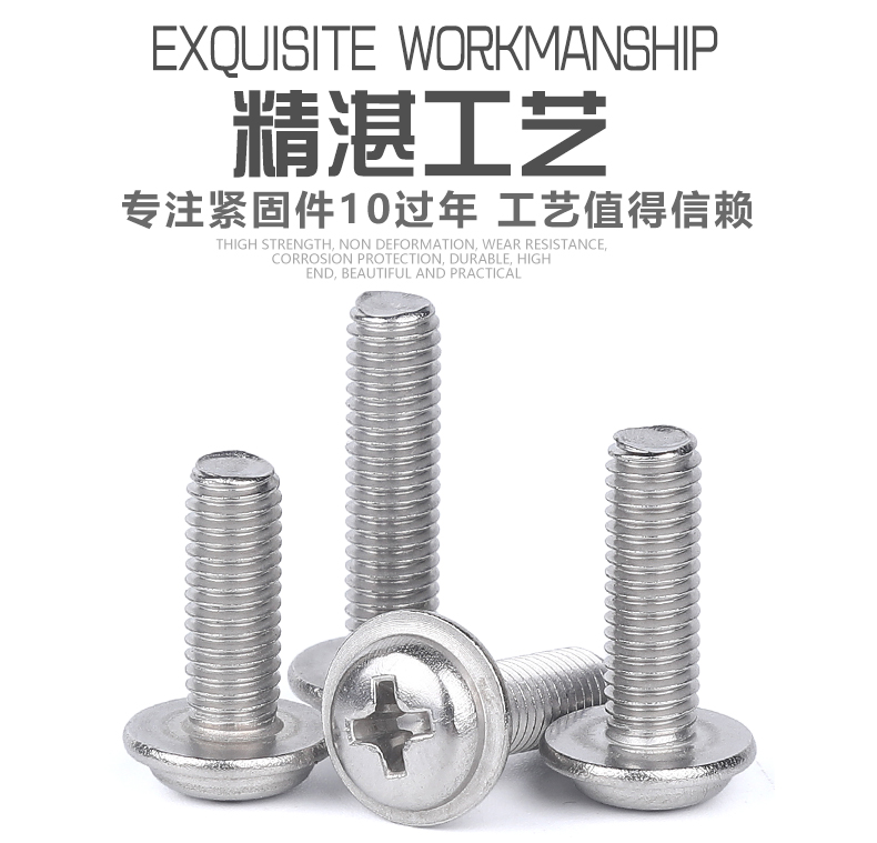 规格型号:不锈钢十字盘头带垫螺钉DIN967 M3X10