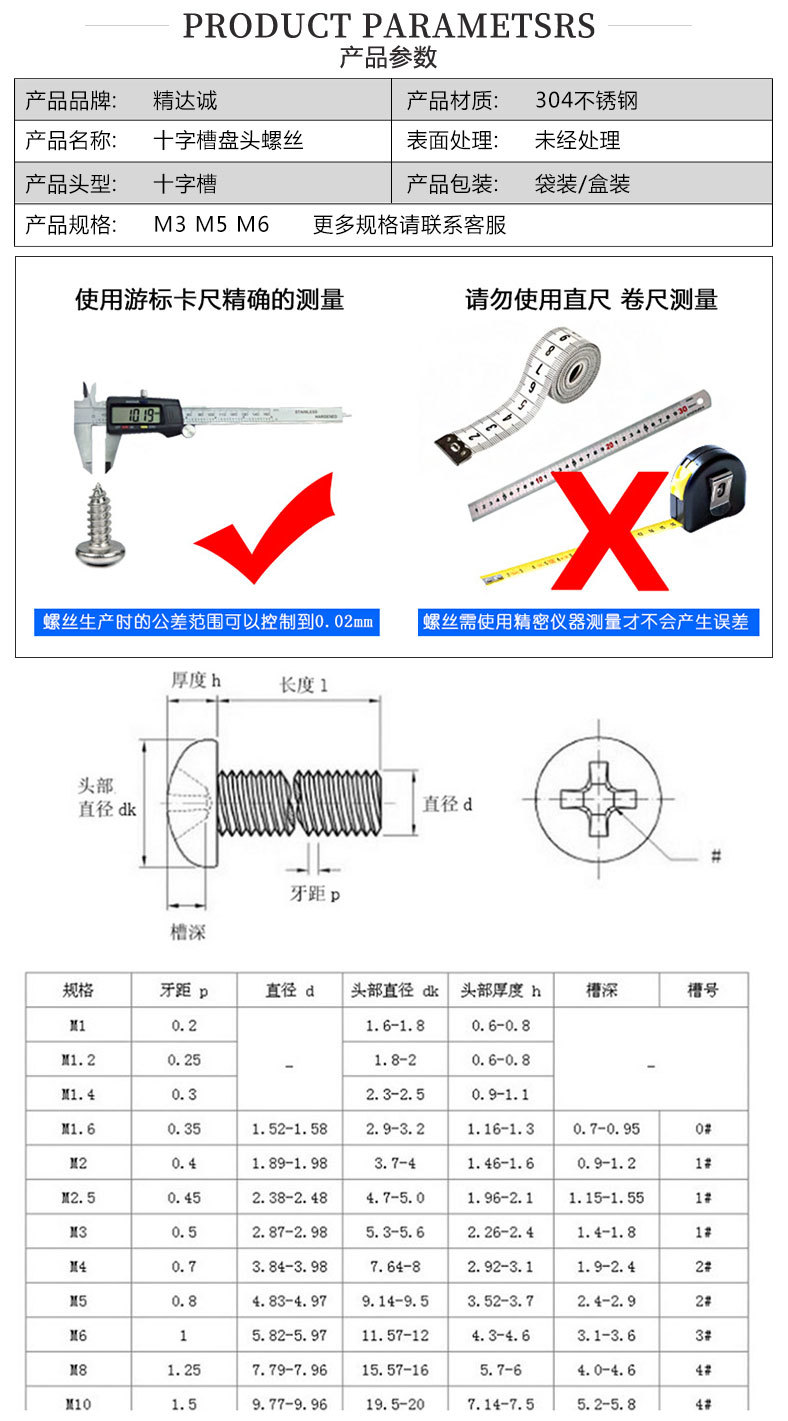 规格型号:不锈钢十字槽小盘头螺钉GB/T 823-2016 M3X8
