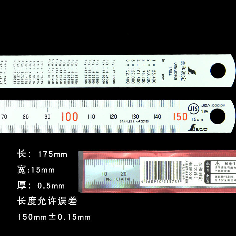 SHINWA(量器)日本亲和钢直尺 日本亲和钢直尺不锈钢尺子100cm