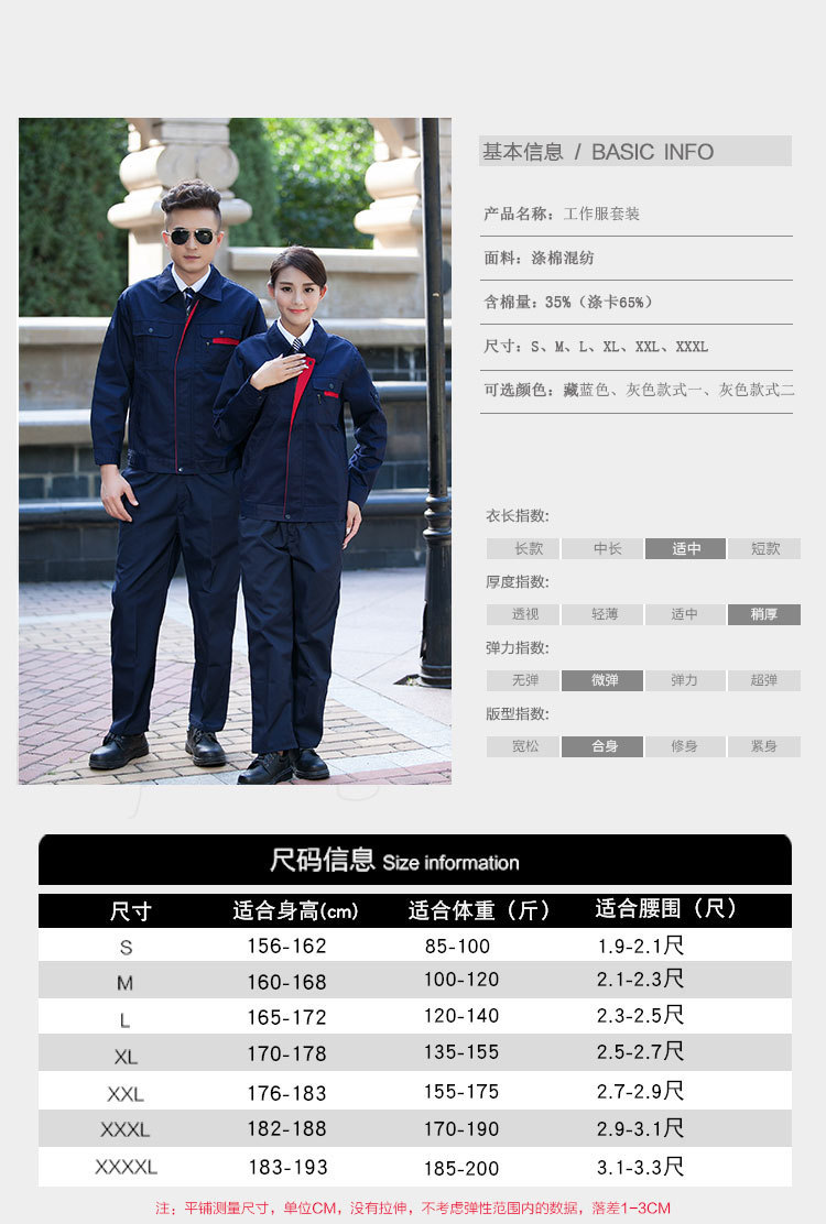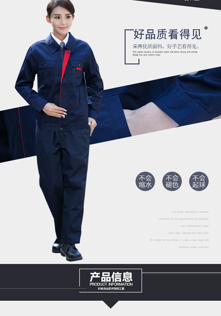 规格型号:小拉链春秋款车间工作服 涤棉普通工装劳保服套装 加工定制车间服