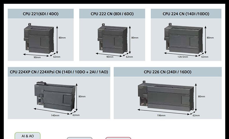 参数:S7-200CN CPU222 CN DC/DC/DC 8数字量入/6数字量出(DI 8*24VDC/DO 6*DC24V)