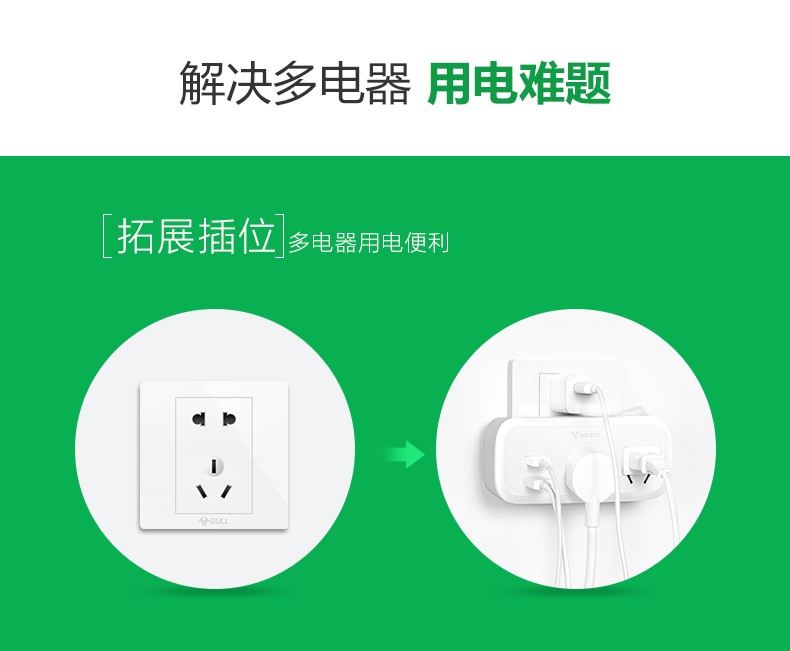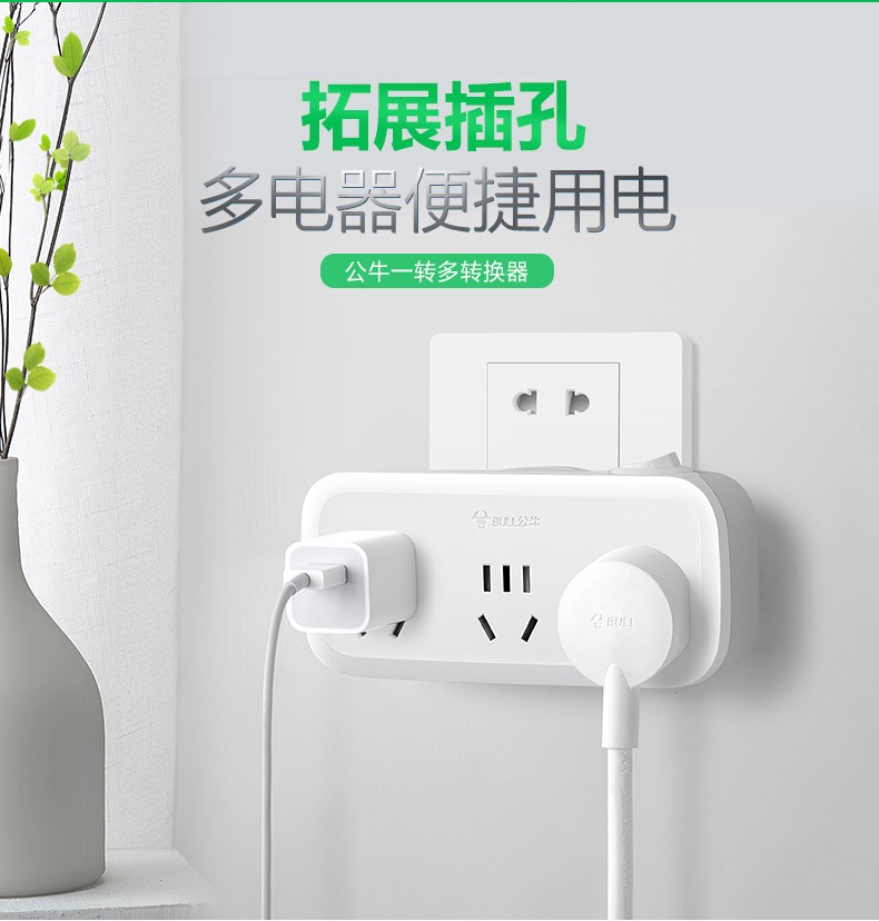 公牛公牛一转三转换插头插座转换器一拖三一变三