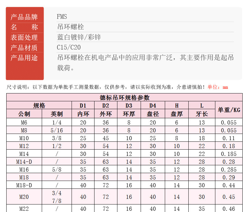 规格型号:M16*28