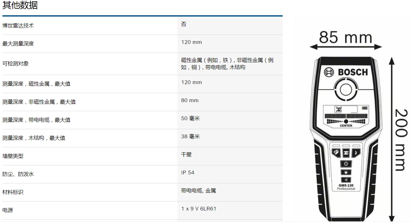 博世墙体探测仪 GMS 120 Profes