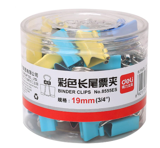 得力8555ES 长尾夹彩色19mm/5# 40只/盒
