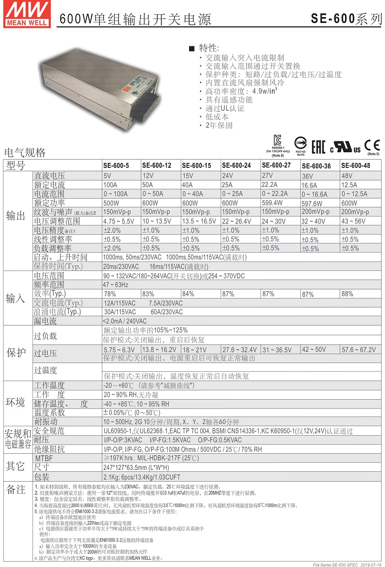 规格型号:SE-600-48